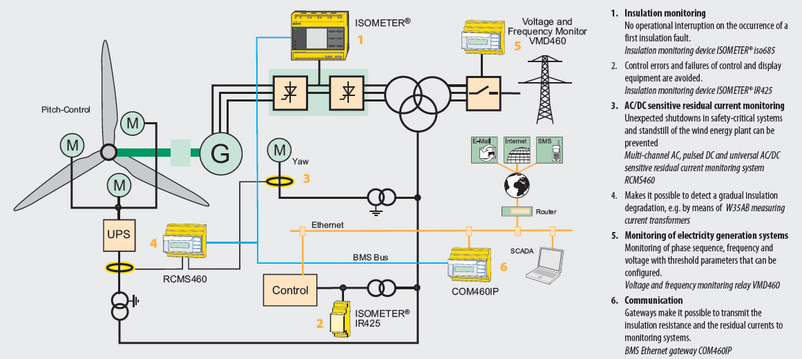 Opririle neasteptate ale sistemelor critice din punct de vedere al sigurantei si timpii de nefunctionare pentru centralele de energie eoliana sunt evitate folosind un controler care monitorizeaza pasul pe baza sistemelor de monitorizare a curentului rezidual RCMS.